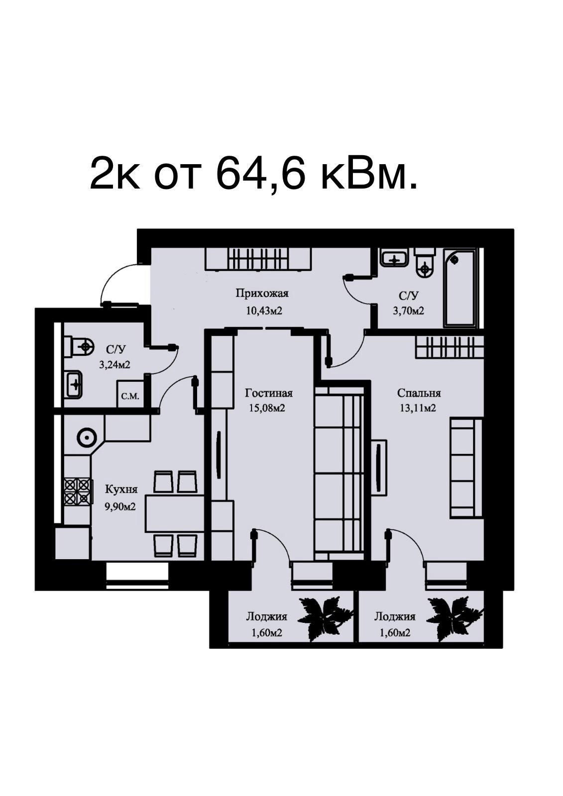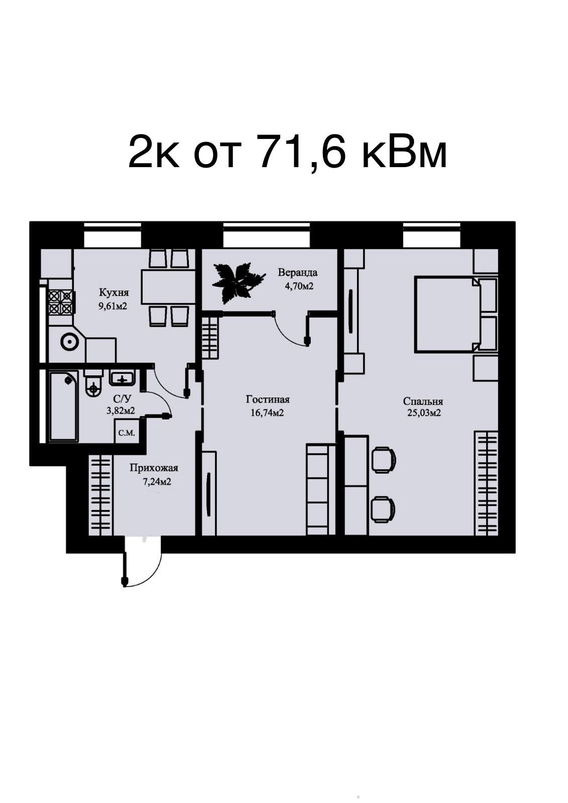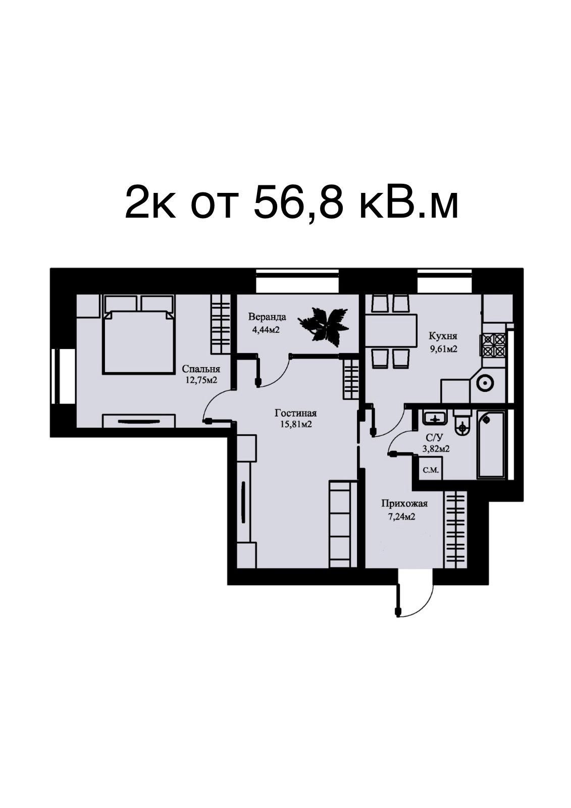 - Отделка: черновая — возможность реализовать собственный дизайн